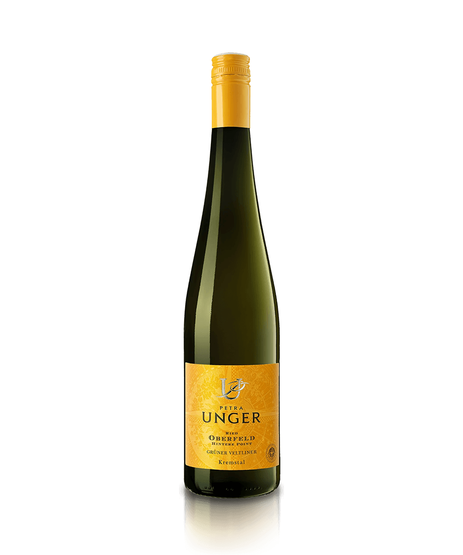 Der Grüner Veltliner Oberfeld 2021 1. ÖTW Lage ist ein großartiger schmelziger Grüner Veltliner in der Kollektion von Petra Unger. Er entstammt der sehr warmen Lage Oberfeld.